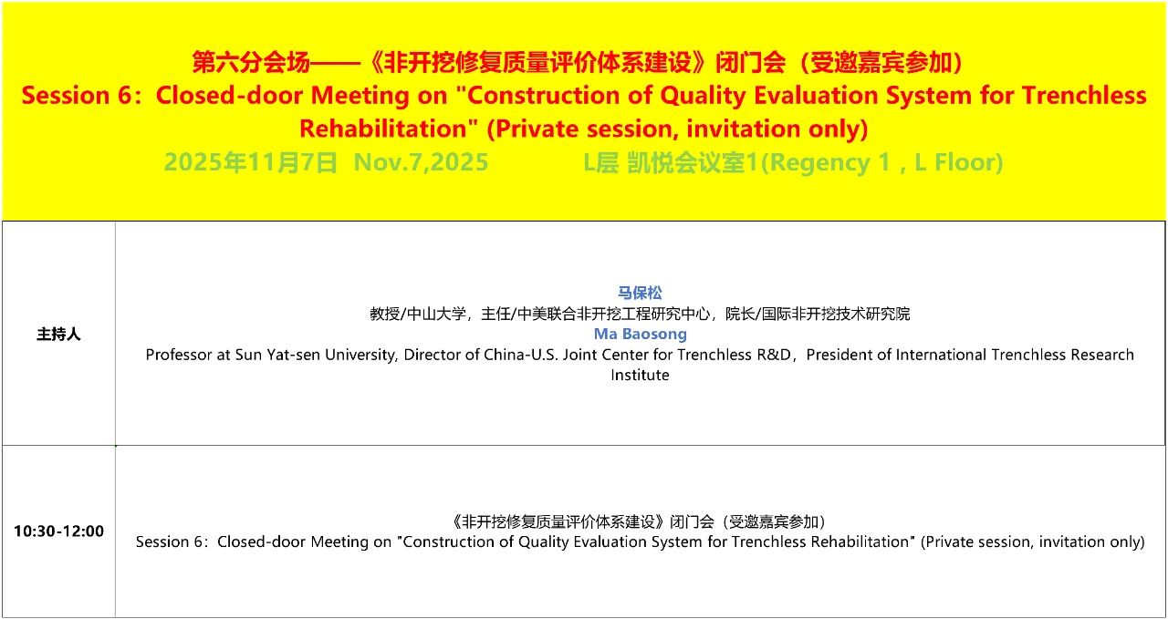 Session 6:Closed-door Meeting on "Construction of Quality Evaluation System for Trenchless Rehabilitation" (Private session, invitation only)